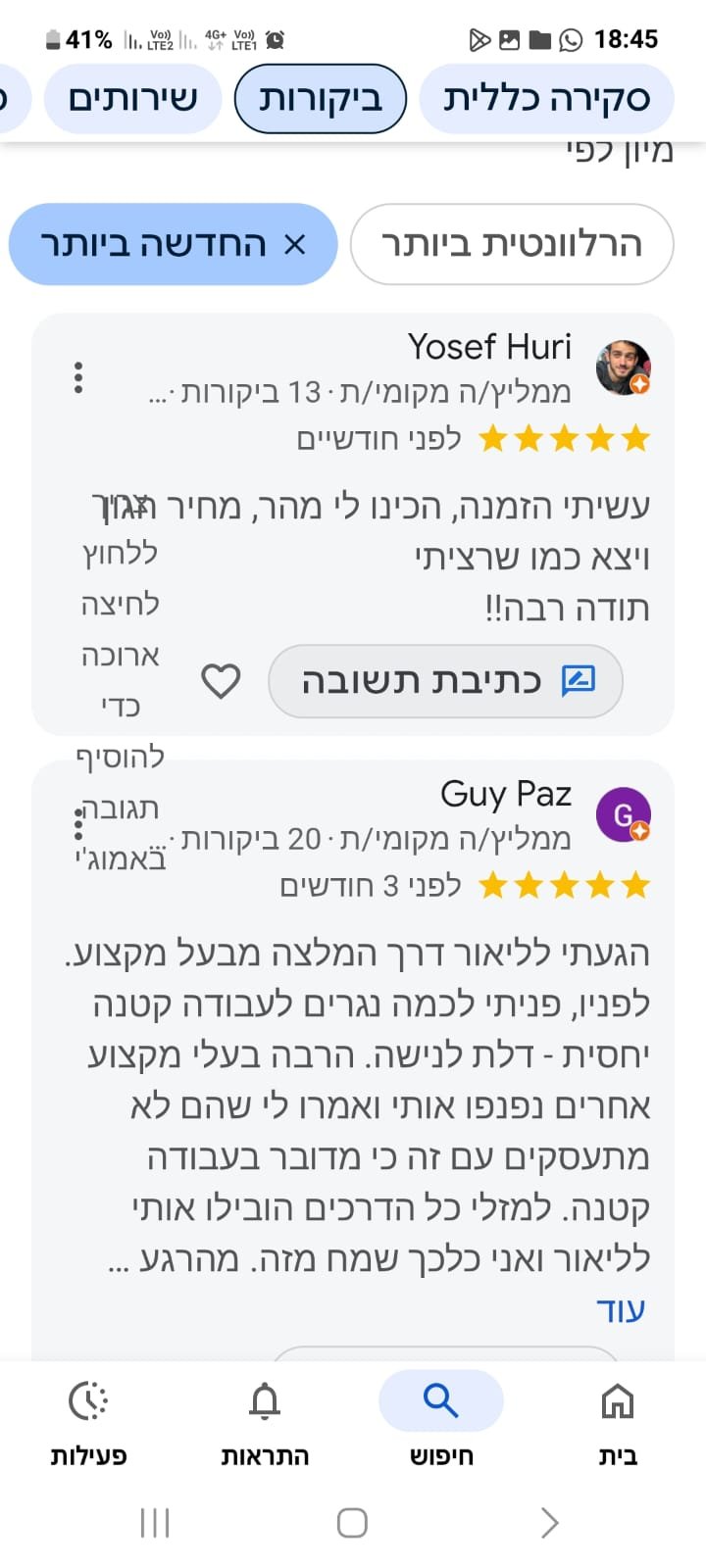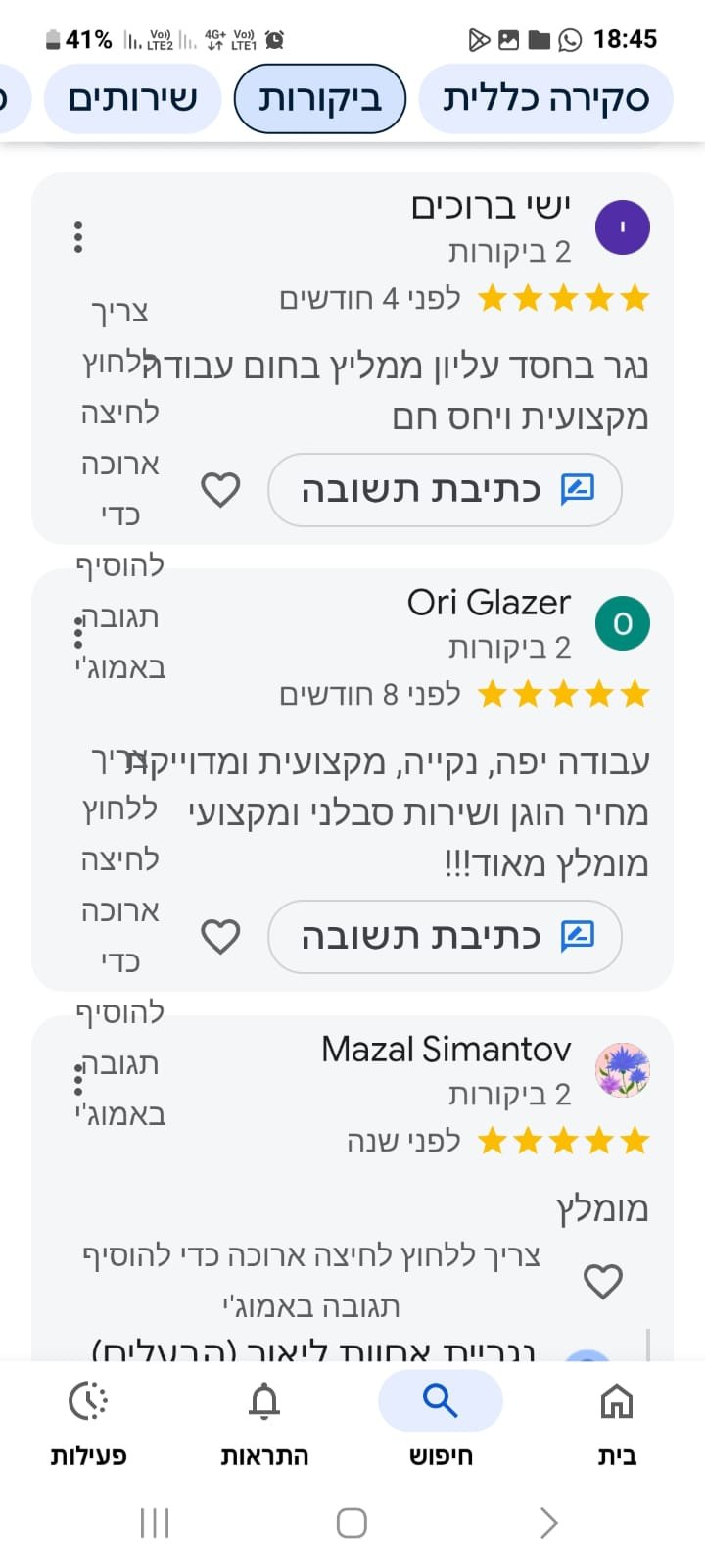 שירות אמין ויחס אישי – שקיפות מלאה, זמינות גבוהה ומחויבות אמיתית לשביעות הרצון שלך.
